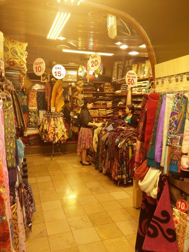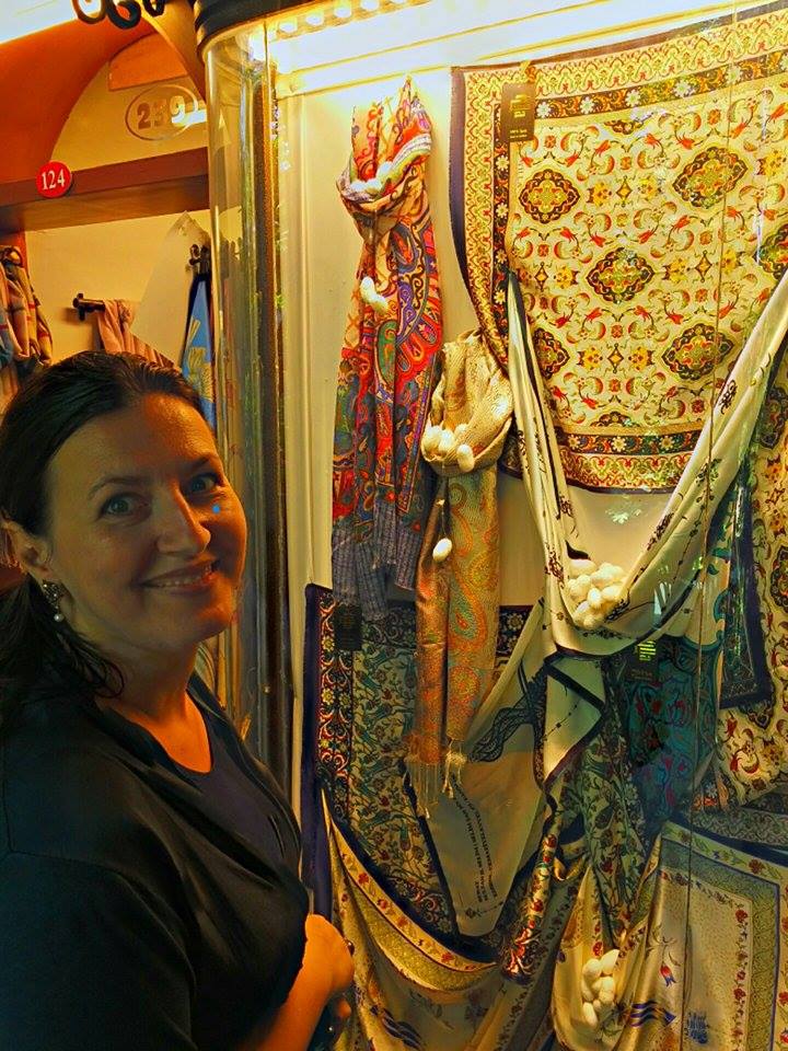 Marele Bazar – Kapali Carși e o mare de lumini și culoare, în care e bine să știi ce cauți, să-ți iei odată ce vrei și după aceea să lași vânzătorii să-și depene poveștile, lecțiile de frumos și de istorie. De-a lungul timpului, la un păhăruț de ceai de mere, am aflat o mulțime despre o mulțime de minunății de la negustorii din Marele Bazar. Despre covoarele din lână și mătase, turcești și persane, despre nodurile lor simple și duble, despre urzelile lor din lână, bumbac sau mătase; despre șalurile de mătase și pashmina, țesute, imprimate sau brodate, indiene sau turcești; despre cum se deosebesc fibrele naturale de cele sintetice; despre argint, aur și cupru în bijuterii, despre sticlă, ceramică și porțelanuri. Aromele, experiențele tactile incredibile, zumzetul negocierilor continue și marea de culoare a Bazarului sunt drogul meu.